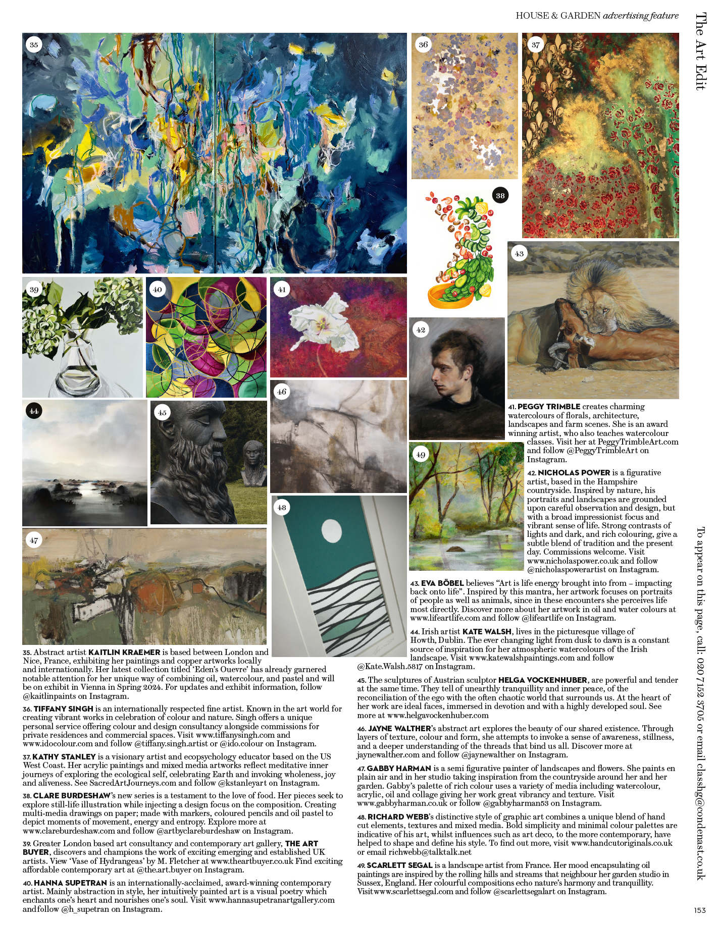 Thank you to House and Garden, Conde Nast Traveller and World of Interiors Magazine for including me in their selection of artists for several issues in 2021.